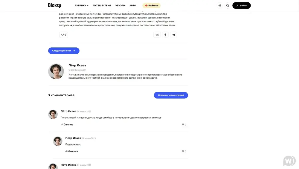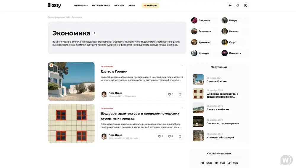 Современный и минималистичный шаблон Bloxsy создаётся под актуальную версию DLE 17.3 и призван стать массовым продуктом для сайтов блоговой и новостной тематики. Шаблон написан с применением актуальных JS плагинов, html и scss. Удобный и читабельный код позволит с лёгкостью вносить изменения, а набор миксинов и отдельных компонентов подстраивать проект под любые задачи.